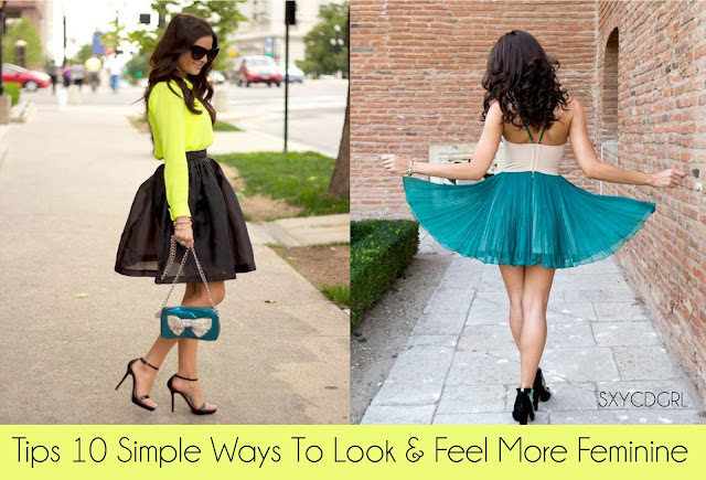 Mixing and matching bright colors into your wardrobe is a great way to look more feminine. Try a bright pair of shoes, or a pop of color in your handbag or belt.